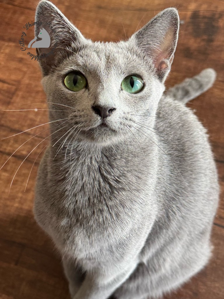 With striking green eyes and a pale silvery coat, she is the picture of elegance.
